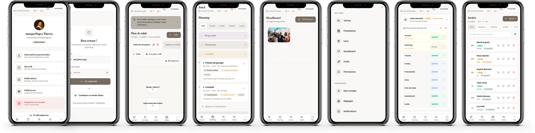 Les fonctionnalités qui structurent l’organisation du mariage.